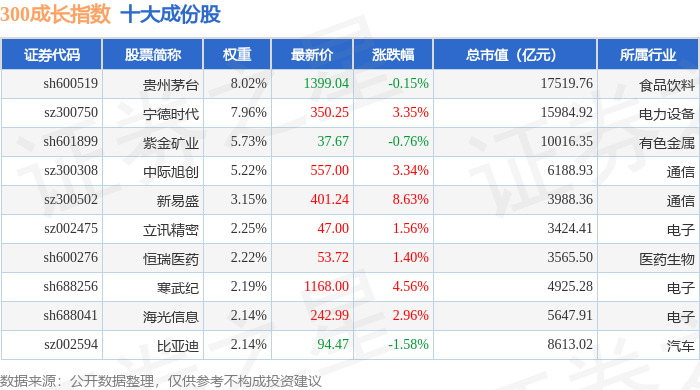 300成长(000918)指数十大成份股详情如下: