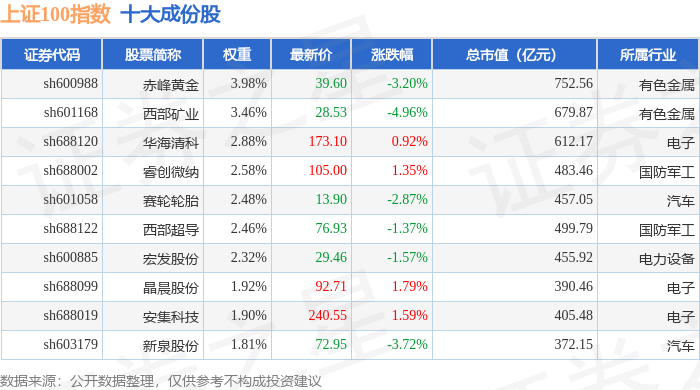 证券之星消息,3月16日,上证100(000132)指数报收于6204.85点,跌0.87%,成交492.71亿元,换手率1.56%。当日该指数成份股中,上涨的有45家,瑞可达以7.74%的涨幅领涨,下跌的有54家,景津装备以7.13%的跌幅领跌。