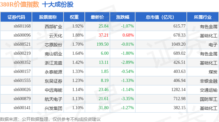 380R价值(000120)指数十大成份股详情如下: