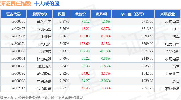 深证责任(399341)指数十大成份股详情如下: