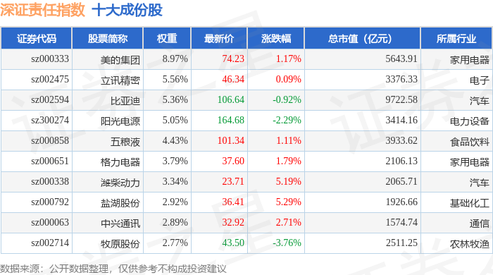 证券之星消息,3月24日,深证责任(399341)指数报收于1604.54点,涨1.18%,成交1070.54亿元,换手率1.51%。当日该指数成份股中,上涨的有90家,艾比森以9.84%的涨幅领涨,下跌的有10家,牧原股份以3.76%的跌幅领跌。