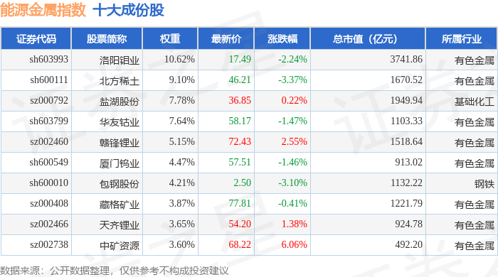 资金流向方面,能源金属(399366)指数成份股当日主力资金净流入合计6.63亿元,游资资金净流出合计5.44亿元,散户资金净流出合计1.22亿元。成份股资金流向详情见下表:
