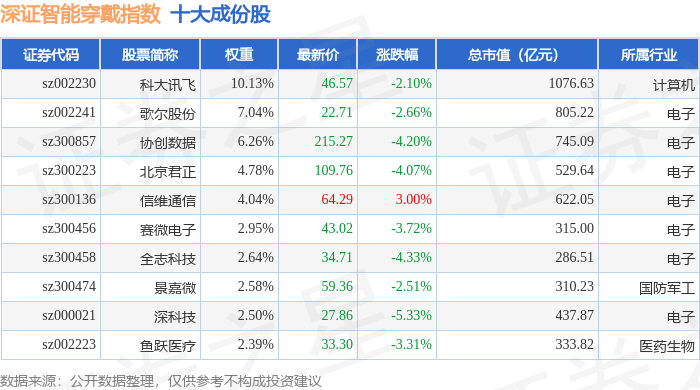 深证智能穿戴(970074)指数十大成份股详情如下: