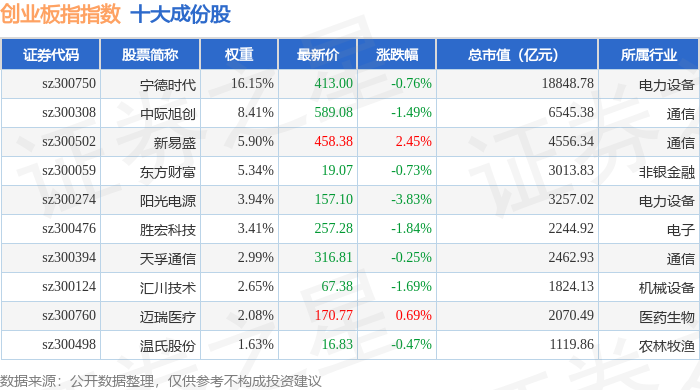 资金流向方面,创业板指(399006)指数成份股当日主力资金净流出合计67.42亿元,游资资金净流入合计33.27亿元,散户资金净流入合计34.15亿元。成份股资金流向详情见下表: