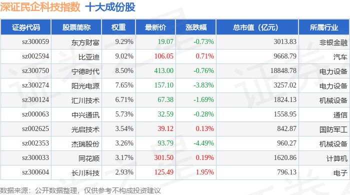 深证民企科技(970059)指数十大成份股详情如下: