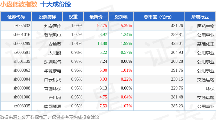 小盘低波(399408)指数十大成份股详情如下: