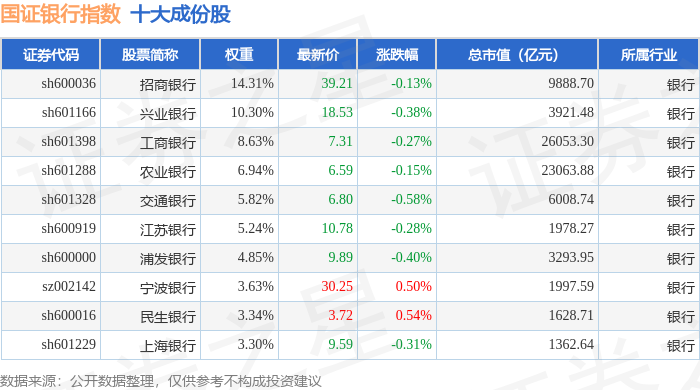 证券之星消息,4月10日,国证银行(399431)指数报收于756718.0点,跌14.0%,成交158.19亿元,换手率15.0%。当日该指数成份股中,上涨的有9家,沪农商行以1.77%的涨幅领涨,下跌的有19家,南京银行以1.0%的跌幅领跌。