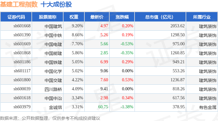 资金流向方面,基建工程(399995)指数成份股当日主力资金净流出合计8785.67万元,游资资金净流入合计842.8万元,散户资金净流入合计7942.86万元。成份股资金流向详情见下表: