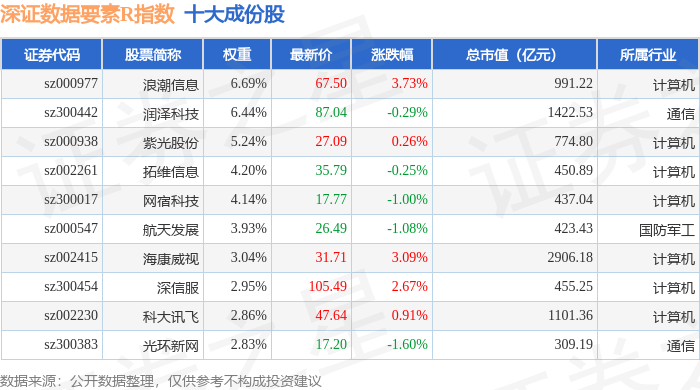 深证数据要素R(470053)指数十大成份股详情如下: