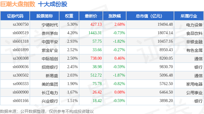 资金流向方面,巨潮大盘(399314)指数成份股当日主力资金净流出合计26.89亿元,游资资金净流出合计6.55亿元,散户资金净流入合计33.43亿元。成份股资金流向详情见下表: