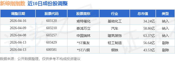 近10日内新综指(000017)指数成份股做了调整,新纳入了3只股票,剔除了2只股票。