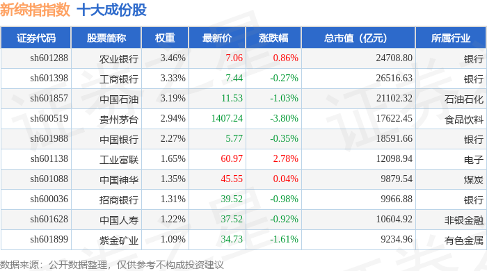 新综指(000017)指数十大成份股详情如下: