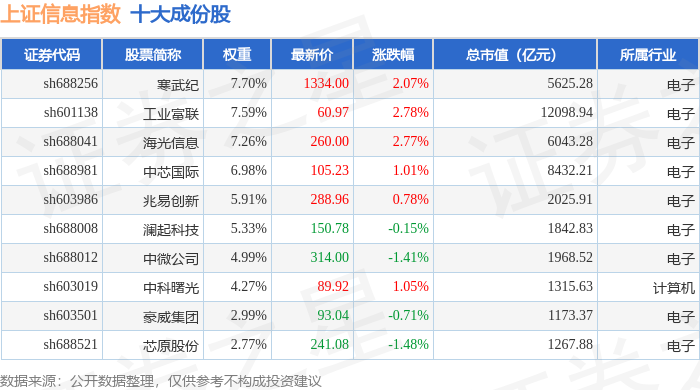 上证信息(000039)指数十大成份股详情如下: