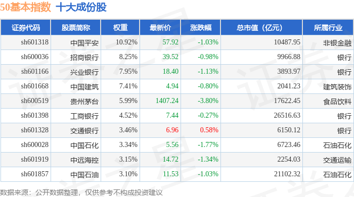 证券之星消息,4月17日,50基本(000052)指数报收于284702.0点,跌97.0%,成交1347.88亿元,换手率25.0%。当日该指数成份股中,上涨的有11家,海光信息以2.77%的涨幅领涨,下跌的有37家,药明康德以5.93%的跌幅领跌。