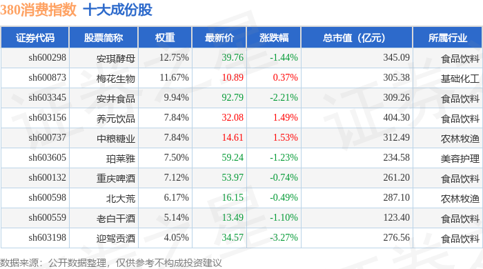 证券之星消息,4月17日,380消费(000108)指数报收于1222569.0点,跌71.0%,成交33.15亿元,换手率87.0%。当日该指数成份股中,上涨的有3家,中粮糖业以1.53%的涨幅领涨,下跌的有15家,迎驾贡酒以3.27%的跌幅领跌。