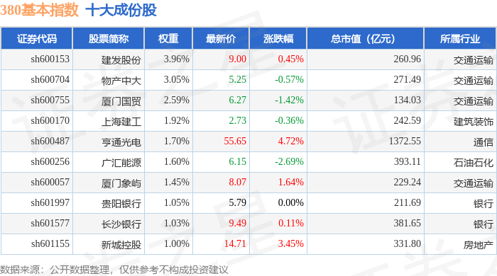 380基本(000128)指数十大成份股详情如下: