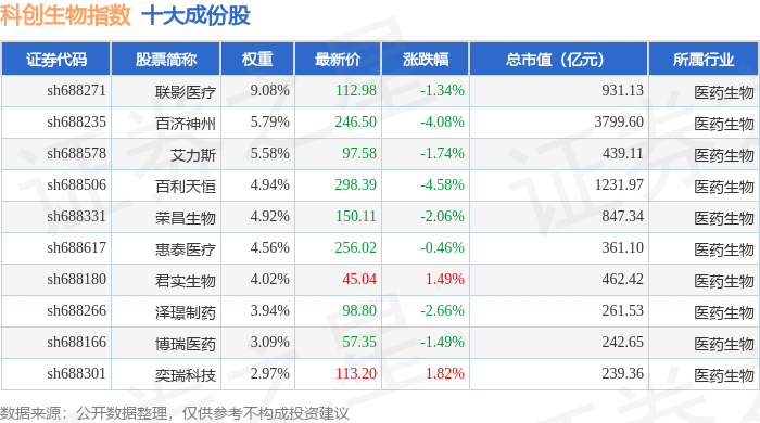 证券之星消息,4月17日,科创生物(000683)指数报收于109303.0点,跌167.0%,成交146.21亿元,换手率160.0%。当日该指数成份股中,上涨的有8家,奕瑞科技以1.82%的涨幅领涨,下跌的有42家,百利天恒以4.58%的跌幅领跌。