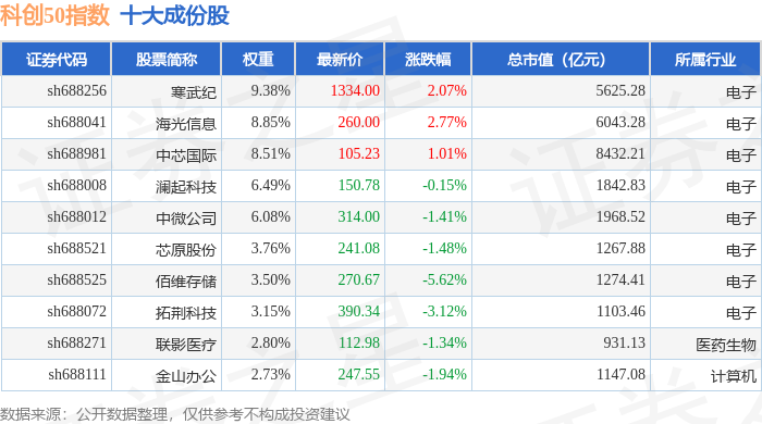 证券之星消息,4月17日,科创50(000688)指数报收于142335.0点,涨8.0%,成交882.52亿元,换手率145.0%。当日该指数成份股中,上涨的有24家,国博电子以6.43%的涨幅领涨,下跌的有25家,佰维存储以5.62%的跌幅领跌。
