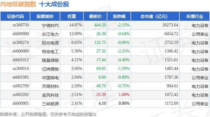 内地低碳(000977)指数十大成份股详情如下:
