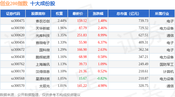 证券之星消息,4月17日,创业200(399019)指数报收于486197.0点,涨117.0%,成交1481.81亿元,换手率478.0%。当日该指数成份股中,上涨的有107家,帝尔激光以20.0%的涨幅领涨,下跌的有91家,开山股份以4.8%的跌幅领跌。
