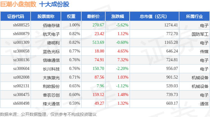 巨潮小盘(399316)指数十大成份股详情如下: