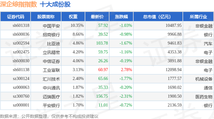 深企综指(399352)指数十大成份股详情如下: