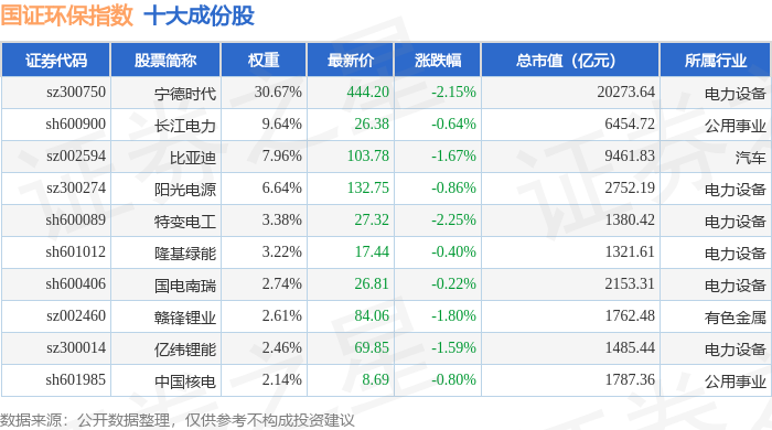 国证环保(399358)指数十大成份股详情如下: