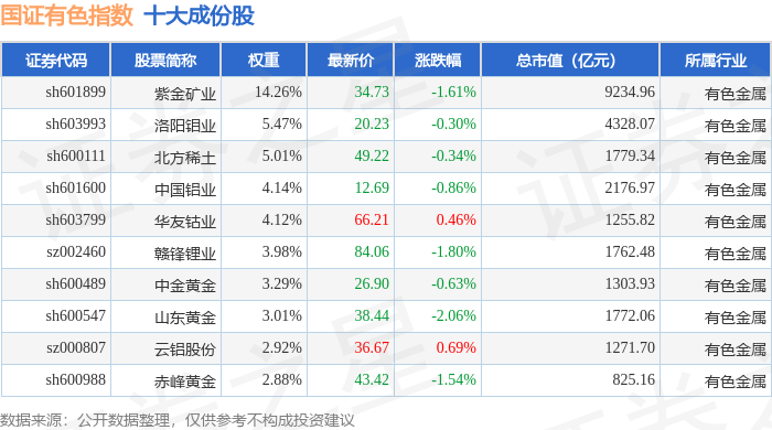 资金流向方面,国证有色(399395)指数成份股当日主力资金净流出合计36.63亿元,游资资金净流入合计9.74亿元,散户资金净流入合计26.88亿元。成份股资金流向详情见下表: