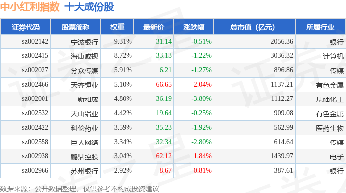 证券之星消息,4月17日,中小红利(399649)指数报收于344515.0点,跌80.0%,成交342.62亿元,换手率96.0%。当日该指数成份股中,上涨的有14家,滨江集团以4.05%的涨幅领涨,下跌的有35家,永兴材料以5.16%的跌幅领跌。