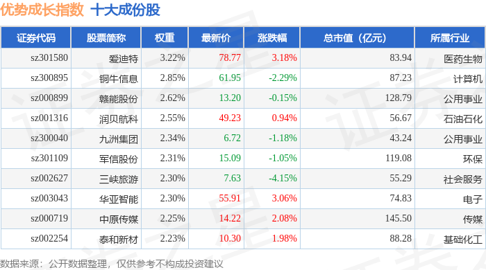 证券之星消息,4月17日,优势成长(399698)指数报收于5270561.0点,跌21.0%,成交67.07亿元,换手率177.0%。当日该指数成份股中,上涨的有18家,银禧科技以3.47%的涨幅领涨,下跌的有32家,三峡旅游以4.15%的跌幅领跌。