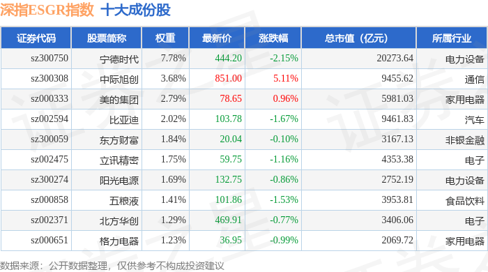 深指ESGR(470026)指数十大成份股详情如下: