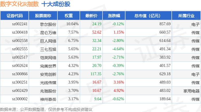 数字文化R(470047)指数十大成份股详情如下: