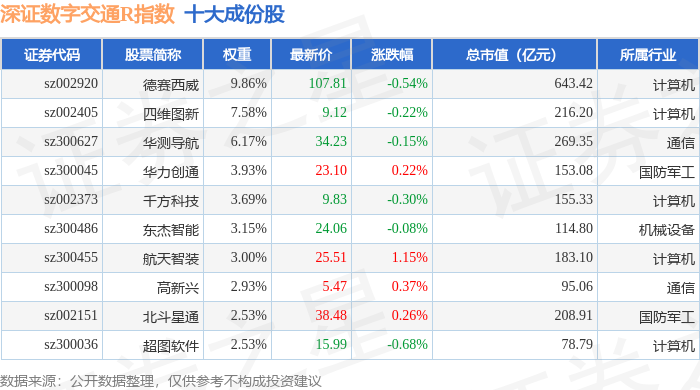 证券之星消息,4月17日,深证数字交通R(470049)指数报收于449581.0点,涨7.0%,成交157.84亿元,换手率228.0%。当日该指数成份股中,上涨的有22家,盛视科技以10.0%的涨幅领涨,下跌的有28家,金溢科技以3.14%的跌幅领跌。