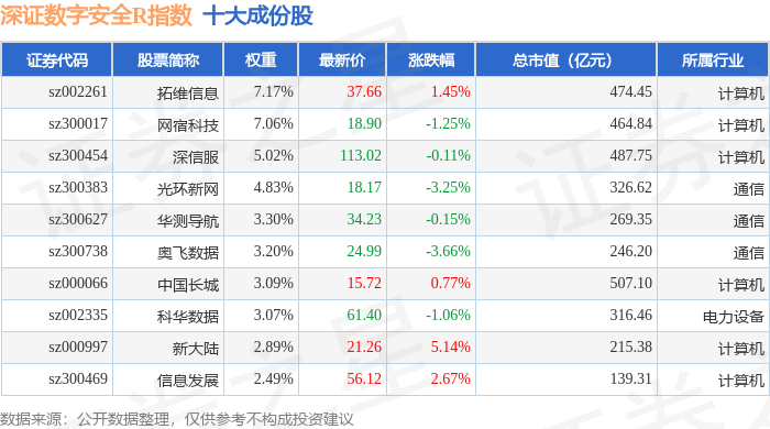证券之星消息,4月17日,深证数字安全R(470052)指数报收于369946.0点,跌27.0%,成交383.06亿元,换手率405.0%。当日该指数成份股中,上涨的有18家,新大陆以5.14%的涨幅领涨,下跌的有31家,奥飞数据以3.66%的跌幅领跌。