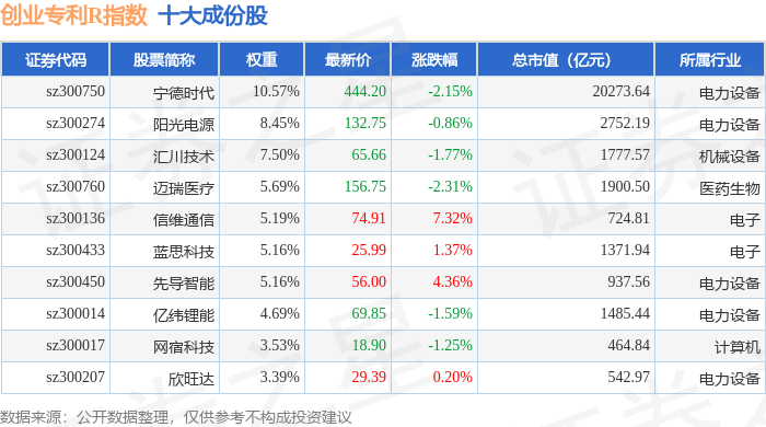创业专利R(470068)指数十大成份股详情如下: