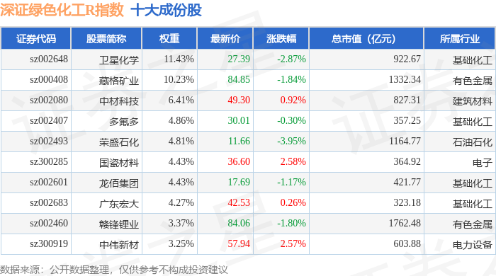深证绿色化工R(470076)指数十大成份股详情如下: