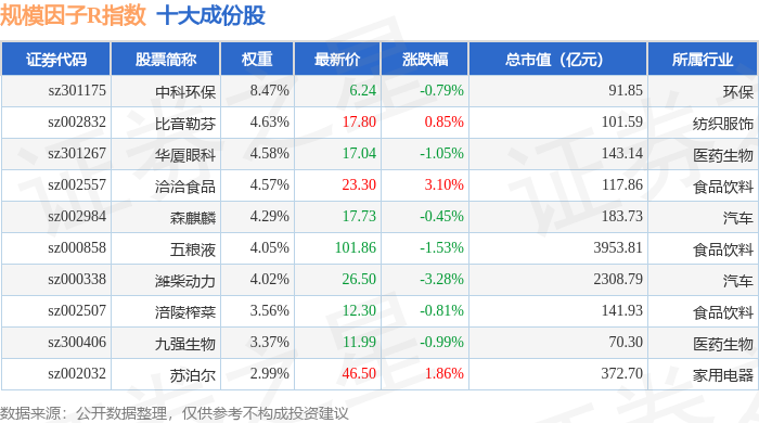 规模因子R(480055)指数十大成份股详情如下: