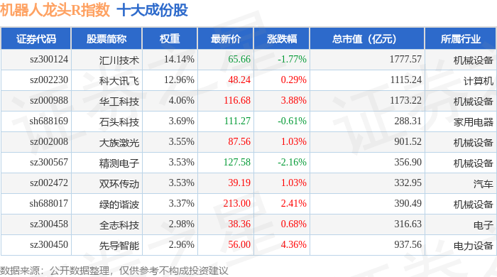 机器人龙头R(480071)指数十大成份股详情如下: