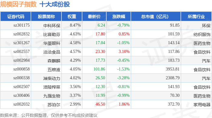 证券之星消息,4月17日,规模因子(980055)指数报收于193830.0点,跌40.0%,成交218.94亿元,换手率89.0%。当日该指数成份股中,上涨的有12家,光线传媒以3.16%的涨幅领涨,下跌的有37家,潍柴动力以3.28%的跌幅领跌。