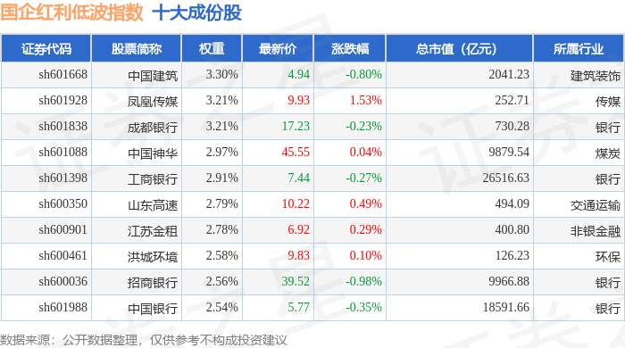 国企红利低波(980139)指数十大成份股详情如下: