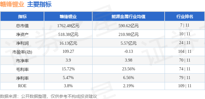 该股主要指标及行业内排名如下: