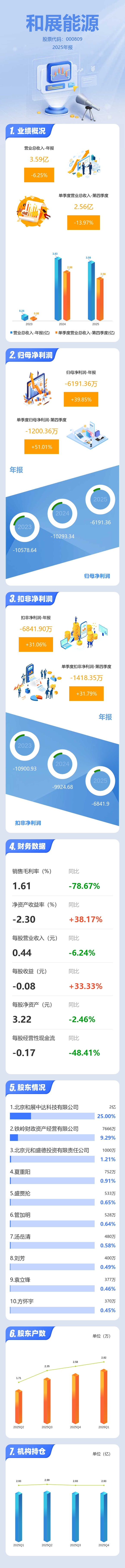 证券之星消息,和展能源2025年年报显示,当年度公司主营收入3.59亿元,同比下降6.25%;归母净利润-6191.36万元,同比上升39.85%;扣非净利润-6841.9万元,同比上升31.06%;其中2025年第四季度,公司单季度主营收入2.56亿元,同比下降13.97%;单季度归母净利润-1200.36万元,同比上升51.01%;单季度扣非净利润-1418.35万元,同比上升31.8%;负债率17.12%,投资收益-1439.23万元,财务费用-591.96万元,毛利率1.61%。