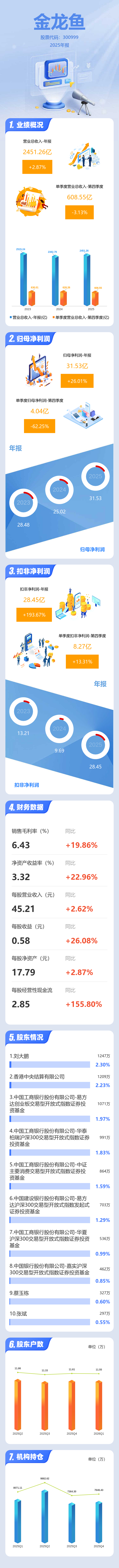 证券之星消息,金龙鱼2025年年报显示,当年度公司主营收入2451.26亿元,同比上升2.87%;归母净利润31.53亿元,同比上升26.01%;扣非净利润28.45亿元,同比上升193.68%;其中2025年第四季度,公司单季度主营收入608.55亿元,同比下降3.14%;单季度归母净利润4.04亿元,同比下降62.26%;单季度扣非净利润8.27亿元,同比上升13.32%;负债率55.86%,投资收益8.66亿元,财务费用5.71亿元,毛利率6.43%。
