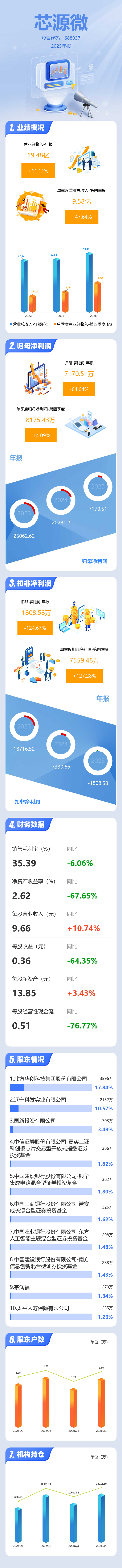 证券之星消息,芯源微2025年年报显示,当年度公司主营收入19.48亿元,同比上升11.11%;归母净利润7170.51万元,同比下降64.64%;扣非净利润-1808.58万元,同比下降124.67%;其中2025年第四季度,公司单季度主营收入9.58亿元,同比上升47.65%;单季度归母净利润8175.43万元,同比下降14.1%;单季度扣非净利润7559.48万元,同比上升127.28%;负债率54.48%,投资收益335.9万元,财务费用2740.16万元,毛利率35.39%。