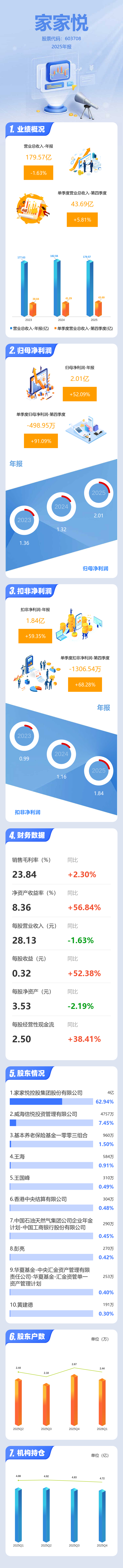 证券之星消息,家家悦2025年年报显示,当年度公司主营收入179.57亿元,同比下降1.64%;归母净利润2.01亿元,同比上升52.09%;扣非净利润1.84亿元,同比上升59.35%;其中2025年第四季度,公司单季度主营收入43.69亿元,同比上升5.82%;单季度归母净利润-498.95万元,同比上升91.09%;单季度扣非净利润-1306.54万元,同比上升68.28%;负债率82.18%,投资收益-226.91万元,财务费用1.81亿元,毛利率23.84%。