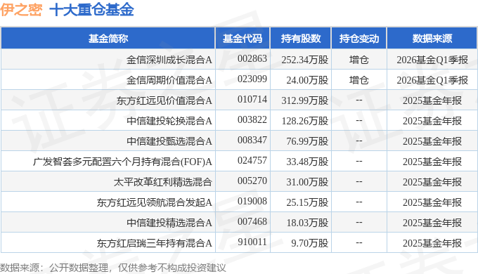 持有伊之密最多的基金为金信深圳成长混合A,目前规模为2.46亿元,最新净值3.1536(4月16日),较上一交易日上涨1.06%,近一年上涨61.14%。该基金现任基金经理为黄飙 杨超。