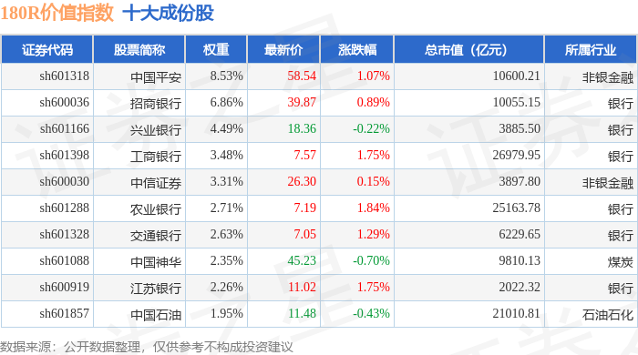 180R价值(000031)指数十大成份股详情如下: