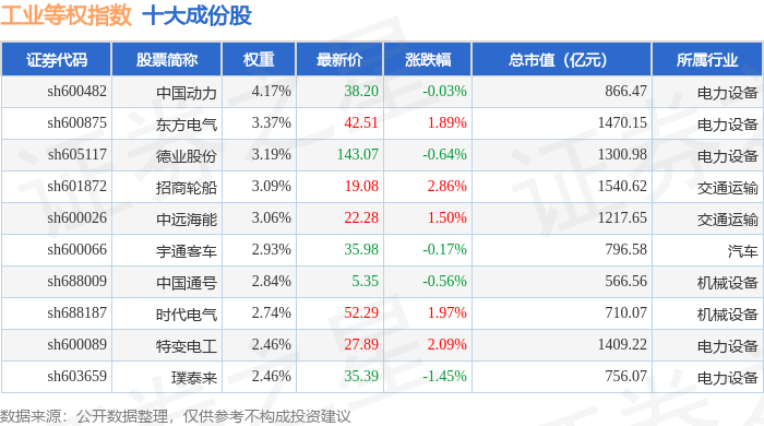 证券之星消息,4月20日,工业等权(000072)指数报收于328423.0点,涨77.0%,成交615.97亿元,换手率100.0%。当日该指数成份股中,上涨的有29家,中国船舶以6.81%的涨幅领涨,下跌的有19家,恒立液压以1.96%的跌幅领跌。