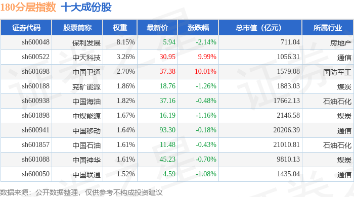 资金流向方面,180分层(000093)指数成份股当日主力资金净流入合计7.5亿元,游资资金净流出合计10.86亿元,散户资金净流入合计3.35亿元。成份股资金流向详情见下表: