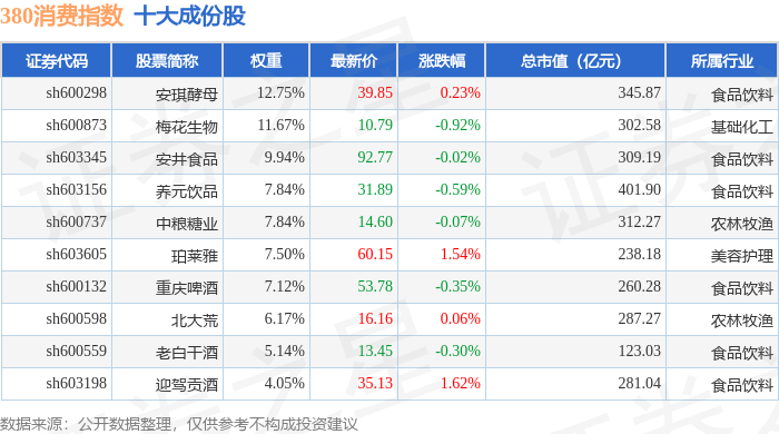 证券之星消息,4月20日,380消费(000108)指数报收于1221764.0点,跌7.0%,成交33.67亿元,换手率91.0%。当日该指数成份股中,上涨的有10家,天味食品以2.6%的涨幅领涨,下跌的有8家,安迪苏以6.12%的跌幅领跌。